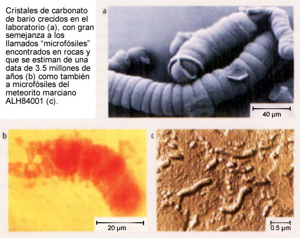 Según expertos de NASA, el hallazgo de microfósiles incrustados en un meteorito proveniente del planeta Marte demostraba que la vida había surgido en el pasado en ese planeta. Pero ahora se demuestra que formas muy semejantes a esos microfósiles pueden crearse en la tierra, en un laboratorio de mineralogía.